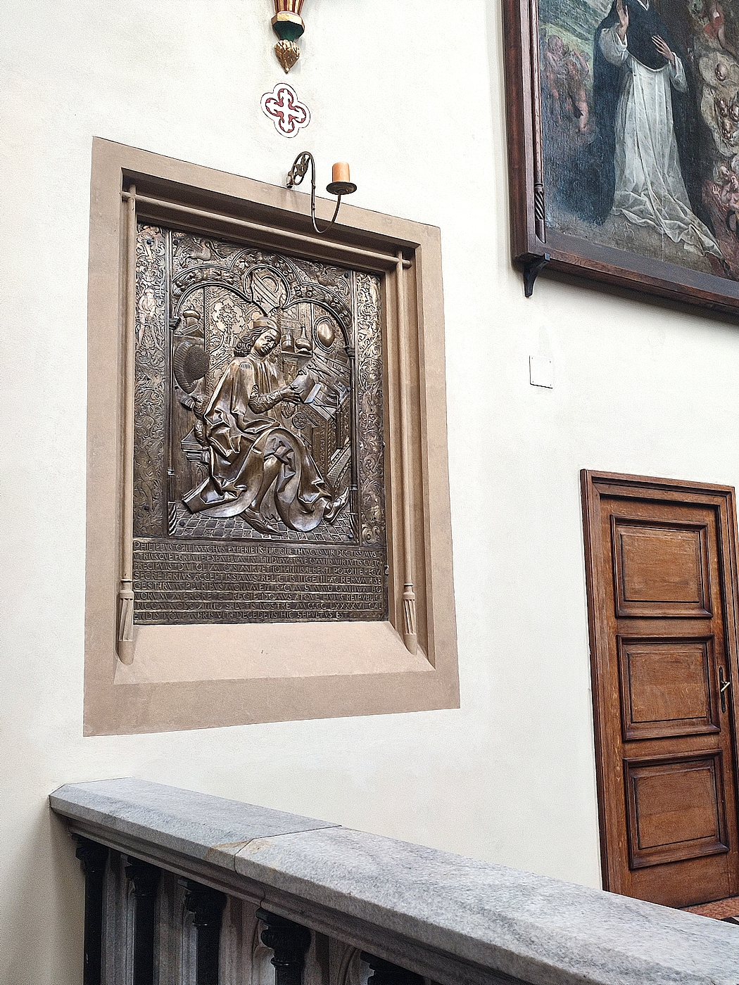 W prezbiterium, obok ołtarza głównego, spoczywa książę Leszek Czarny (zm. 1288). Znajduje się tu również brązowa płyta nagrobna wybitnego humanisty Filipa Kallimacha (zm. 1496), wykonana według projektu Wita Stwosza.